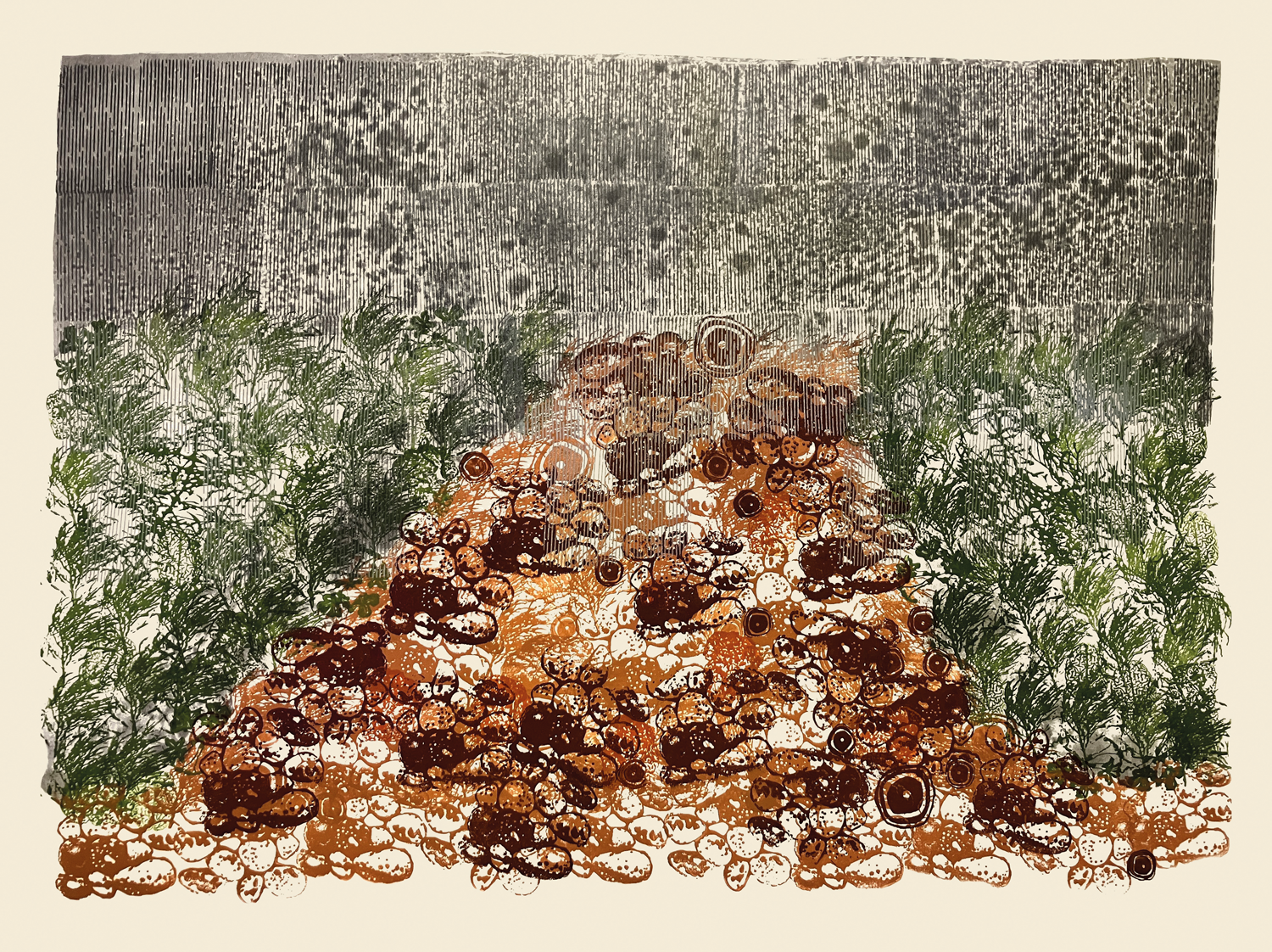 Monotipia e carimbo sobre papel.